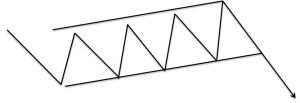 After this flagpole, a valid flag pattern will form a tight consolidation range. The time period of this consolidation is irrelevant. However, the longer the consolidation, the more aggressive the breakout is likely to be. This flag runs between parallel lines, moving upwards, downwards or sideways. It is usually the sideway angles or slightly downward angle flags that are usually followed by sharp moves higher. This part is also called a rectangular channel.
